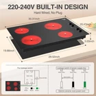 DD015 Special-shaped 220V 7200W Touch screen 7200W 30 Inch Digital Electric Cooktop Hot Plate Stove Cooker LED Touch Screen Description: 220V- 240V Electric Radiant Cooktop: 4 burner electric cooktop ----2 × 1600W and 2 × 2000W. It can heat up quickly and help to prepare different delicious foods at the same time. Save time and energy. The stove cooker also has a LED Touch Screen. Whether it?s a weekend gathering or a friend's visit, you can easily cook a big meal to entertain them. TIPS: The cooktop is no plug. Built-in Cooktop needs to be connected to hard-wired. 9 Level Setting Drop-in Electric Cooktop: The electric cooktop 30 inch, equipped with 9 heat level settings. You can accurately and easily change temperature, boil, stew, fry, stir fry, and switch from one mode to another as needed. The heating effect of the electric ceramic cooktop is the same as that of the gas stove, and the food made is as delicious as the gas stove. Safe Protection: applied with multiple safety devices, such as Over-heating Protection, Hot Surface Indicator, Child Lock, and Auto-Shutoff. Infrared heating, no high-frequency electromagnetic radiation, heat faster, and high efficiency. Modern Design: Modern Built-in design provides more options, use this built-in electric stove on your kitchen counter to save up space. Digital sensor touch control allows you to control the cooker heating effortlessly. Set power& timer and then enjoy leisurely cooking time. Feature: Child Safety Lock 99Mins Timer Automatic Shut-Off Warm Setting Digital Display Knob Control Specification: Installation Type:Drop-In Burner type :?Radiant Heating Elements :4 Voltage:220-240V Wattage:7200W Fuel type :?Electric Material Type :?Ceramic Dimension:30.31*20.47*3.15inch Modern Design Modern sleek black smoothtop cooktop with built-in design. Electric cooktop with digital sensor touch control help to easy control the electric cooker heating accurately. Set power& timer and then enjoy leisure cooking time. Space-saving built-in design The Electric Cooktop Ceramic Stove 4 Burners has a Smooth vitro ceramic glass surface which is for durable use and maintain, easy cleaning. High Power Output High-power induction cooker with 7200W saves you cooking time. Simultaneous 4 burners cooking is freely adjustable to suit your cooking needs and makes it easy to handle multi-person parties. Multi-Protection Each burner of this 220v electric cooktop applied with multiple safety devices, such as Over-heating Protection, Hot Surface Indicator, Child Lock and Auto-Shutoff. 9 Temperature Levels Available Can you set the temperature of the induction hob between 212?-1112?. You can also set up a 99min timer to turn off automatically when the cooking completes. Very easy to operate. Cooking Everything You Want This electric ceramic cooktop is a versatile appliance that can be used for boiling, simmering, frying, and searing. It is a great tool for home cooking. ==================================================================================================== DD008 Special-shaped 220V 7200W Knob Control Electric Cooktop, Built-in 4 Burners Electric Stove Top by Knob, Hot Plate Electric Control with 9 Power Levels 4 burners ?Cooking multiple dishes at once has never been easier with this 30-inch electric cooktop, featuring 4 burners with varying wattage levels (2 x 1600W and 2 x 2000W). Save time and energy by cooking different dishes at the same time. Note that this cooktop requires hardwiring for built-in installation. Precise Temperature Control ? With 9 heat level settings and easy-to-use knob controls, you have precise temperature control to cook a variety of dishes such as boiling, stewing, frying, and stir-frying. The electric ceramic cooktop's heating effect is similar to that of a gas stove, ensuring your food is cooked to perfection every time. Safety First ?It comes with multiple safety features, including over-heating protection, hot surface indicator, child lock, and auto-shutoff. The infrared heating technology ensures there's no high-frequency electromagnetic radiation, making it both efficient and safe to use. Sleek and Space-Saving Design ?Designed to fit seamlessly into your kitchen, this 4 burners electric cooktop features a modern built-in design and a sleek knob control for a clean and elegant look. Its compact size allows for more counter space, making it perfect for small kitchens or apartments. You can set the power and timer for a leisurely cooking experience. Child Safety Lock 99Mins Timer Automatic Shut-Off Warm Setting Digital Display Knob Control Specification Power: 7200W Voltage?220-240V Product dimension?30.31*20.47*3.07 inch Control type?Knob Control Knob Control No complicated buttons, easy to operate and use. Electric cooktop is very suitable for the elderly, suitable for people with poor eyesight, not only it is easy to use, but the feeling of rotating the button by hand is more reliable. Multi-Protection Each burner of this 220v electric cooktop applied with multiple safety devices, such as Over-heating Protection, Hot Surface Indicator, Child Lock and Auto-Shutoff. High Power Output High-power induction cooker with 7200W saves you cooking time. Simultaneous 4 burners cooking is freely adjustable to suit your cooking needs and makes it easy to handle multi-person parties. Space-saving built-in design The Electric Cooktop Ceramic Stove 4 Burners has a Smooth vitro ceramic glass surface which is for durable use and maintain, easy cleaning. 9 Temperature Levels Available Can you set the temperature of the induction hob between 212?-1112?. You can also set up a 99min timer to turn off automatically when the cooking completes. Very easy to operate. Cooking Everything You Want This electric ceramic cooktop is a versatile appliance that can be used for boiling, simmering, frying, and searing. It is a great tool for home cooking. =============================================================================== DD007 DT4W-1 220V 72