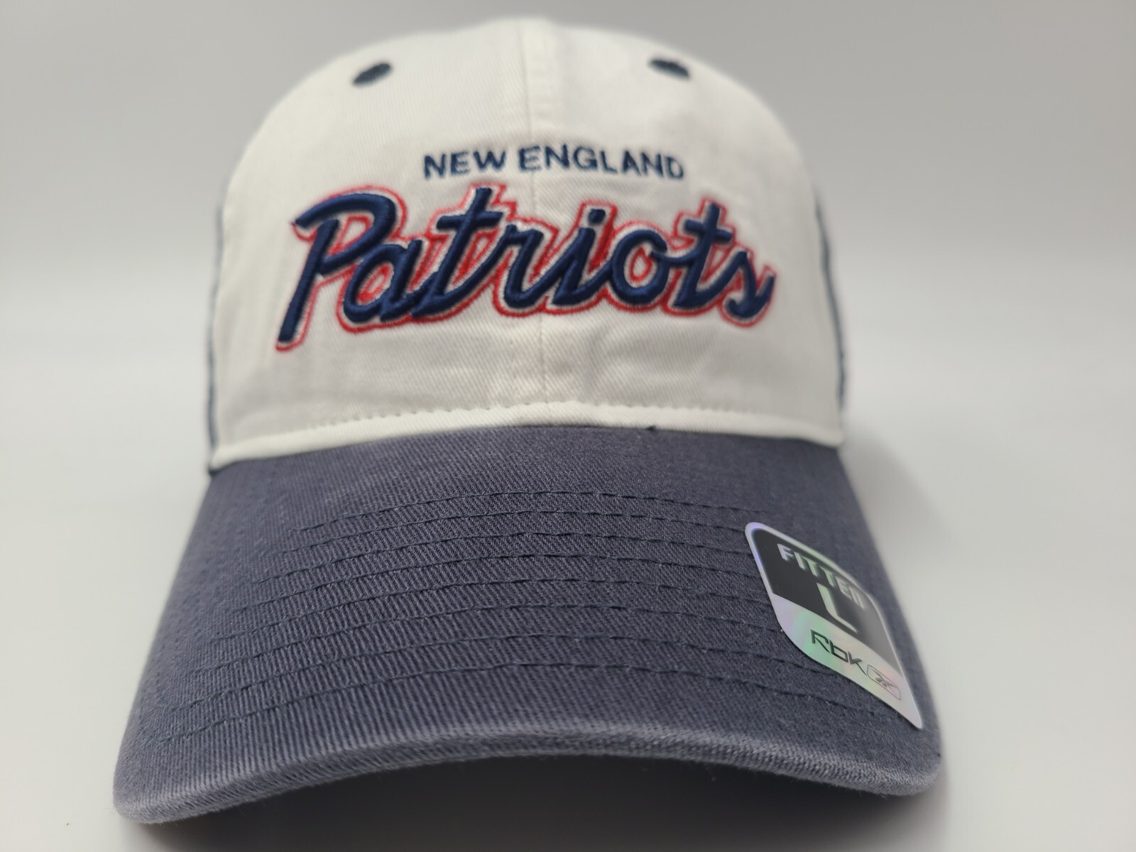 New England Patriots Reebok Script Fitted L Hat Cap Dad Men Women NFL White Blue. EACH ADDITIONAL HAT PURCHASED IS ONLY $1 ADDED SHIPPING!