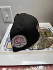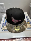 The New Era 59fifty Hat Club Real Tree Pink Camo Pack 7 5/8 Oriole's baseball cap is crafted from polyester and cotton in a solid black color with a canvas fabric type. It features a mix of characters like Kith, Easter, and Stade Olympic, making it ideal for casual occasions. This cap is part of the American-themed collection, offering UV protection, lightweight, and breathable qualities suitable for summer, fall, and spring seasons. Listing will be removed on Monday.