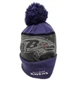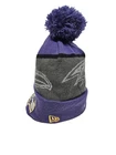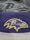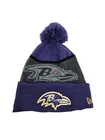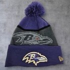 New Era Baltimore Ravens Beanie Hat with Pom Pom Unisex Adult L56 In excellent condition New Era Baltimore Ravens Beanie Hat with Pom Pom Unisex Adult. Features New Era NFL Baltimore Ravens beanie hat, gray and purple colorblock with Ravens Logo knitted around beanine, lined with soft fleece, folded brim, embroidered Baltimore Ravens logo on front, New Era logo in gold embroidered on side, back embroidery Baltimore Ravens, purple top pom pom. Cheer on your favorite team during game day! Unisex Adult one size fits most Fabric polyester and This is a pre-owned item that may show signs of wear. In excellent condition, no flaws.