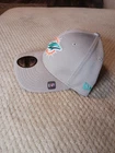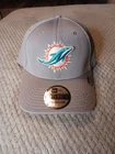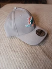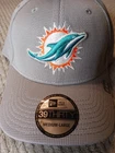 The product is a New Era Miami Dolphins hat in gray, designed in the 39Thirty style for a comfortable and flexible fit in size M/L. This NFL team headwear features the Miami Dolphins team logo and is perfect for male fans looking to show their support during the regular football season. Made by a well-known brand in sports apparel, this hat is a stylish way for fans to represent their favorite team while watching games or out and about.