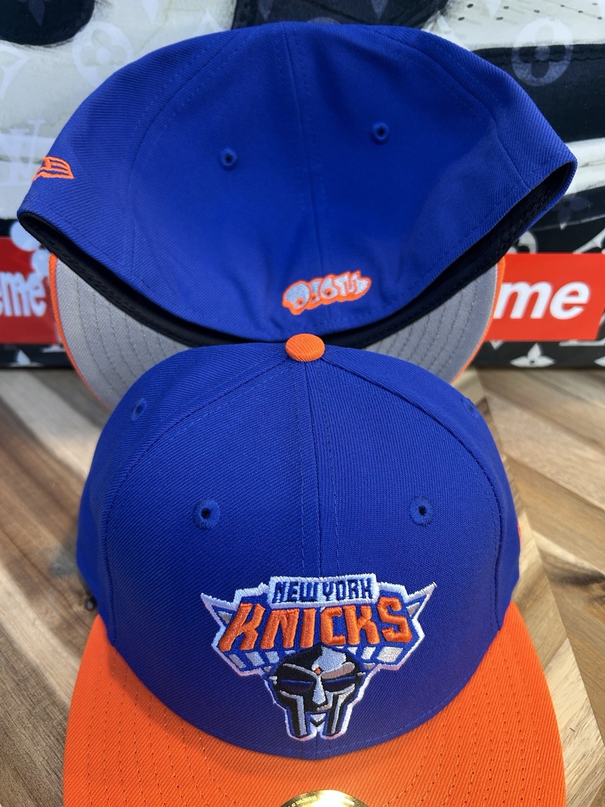 The product is a sold-out rare New Era MF Doom New York Knicks fitted hat in size 7 1/4 and blue color. Made of polyester, it features a solid pattern with various characters like Concepts, Bodega, Purple, and Varsity, making it suitable for casual occasions. The baseball cap from the 59fifty product line is themed around Myfitteds, MLB, and hip hop culture, with influences from Kith, Supreme, and other brands. This limited edition cap is a unique addition to any collection, perfect for fans of the New York Knicks and collectors of exclusive hats.