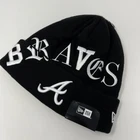 New Era MLB Atlanta Braves Beanie Cuffed Toboggan Black w White Patters Hat Cap