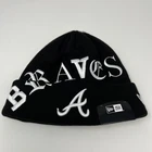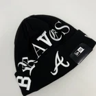 HomeNew Era MLB Atlanta Braves Beanie Cuffed Toboggan Black w White Patters Hat Cap
