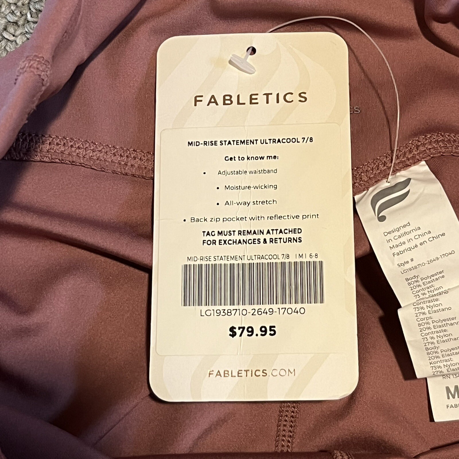 Fabletics Leggings Womens Medium Pink Mid Rise Statement Ultra cool Pocket NWT See measurements for accurate fit Inseam 24 inches Rise 9.5 inches Waist 14 inches across Measurements are done flat lay
