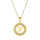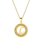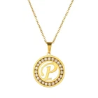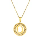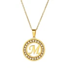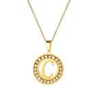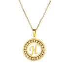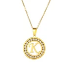 Fashion Gold Square Initial Letter Pendant Necklace, Bling Rhinestone Charm Gift