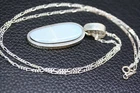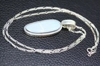 Beautiful Fab New Fire Opal 925 Sterling Silver Pendant Necklace 45CM 18" 2 MM Figaro Chain Overview: This Stylish Necklace in Sterling Silver and the Choker Figaro Chain is 45 CM 18 " and 2 MM width featuring a Large Blue & White Fire Opal Pendant from with High Quality. Condition / Particulars: The Necklace has a Very Nice Polished Finish, and is in excellent new condition. Opal has a hairline crack in the middle. Weight: The Necklace is 12.7 Grams or 0.4 0 of an oz. Size & Measurements: The Necklace size is 18 " or 45 CM, 2 MM Width. Pendant is about 1 1/2" or 4 CM. Metal & Hallmark: The Necklace is Stamped 925 and tested as Silver. Additional Information: Each Necklace is shipped in a secure manner and in a beautiful Blue or Black Velvet pouch.