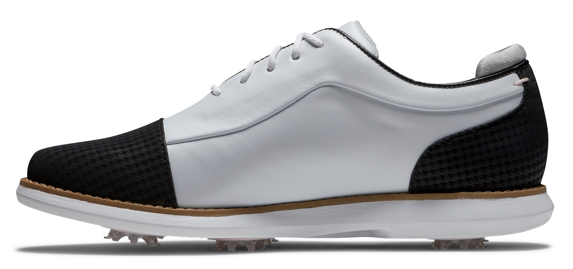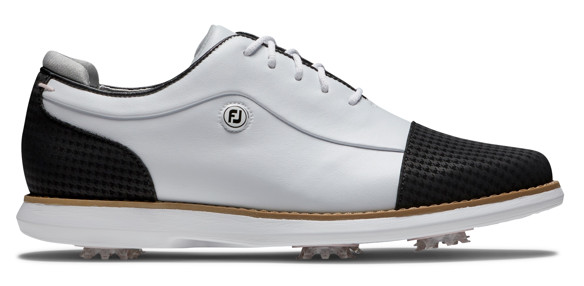 Description Brand: FootJoy Golf Model: Traditions Cap Toe Shoes Condition: Brand New/Factory Sealed Color: See Pulldown Above Size: See Pulldown Above Width: See Pulldown Above New FootJoy Golf Ladies Traditions Shoes 22 FJ Traditions offer complete traction and can be easily maintained round after round. Lightweight comfort and super-cushioned foam deliver an incredibly flexible and comfortable ride. FJ, The #1 Shoe in Golf. Features: Durable Construction: Soft, premium synthetic uppers offer a comfortable fit. Lightweight Construction: A foam midsole provides lightweight comfort. Complete Support: A molded high density EVA Fit-Bed® ensures all-day underfoot comfort. Insert System: The insert system refers to the type of receptacle found on the sole of your golf shoes. The insert system also determines the type of cleat that will fit your golf shoes. This model utilizes the Fast Twist 3.0 cleat system with Pulsar spikes. The Fast Twist 3.0 cleat system is the most advanced insert system on the market. The lower profile design offers improved comfort while still securing each cleat with consistent torque for maximum comfort. Madison Last: The Madison Last offers a standard fit in the heel and instep, with a slightly shallow and square forefoot with extra depth. Waterproof: FJ warrants that this golf shoe will be waterproof in normal use for one year (U.S. Warranty).