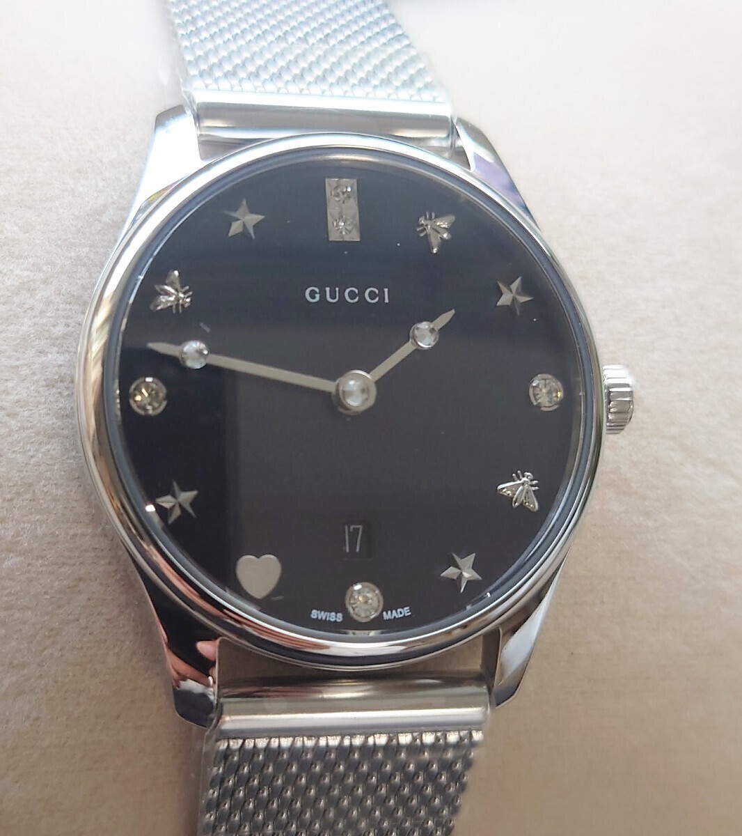 This stunning GUCCI G Timeless Diamond watch is pure elegance! The sleek black design with diamond accents makes it a perfect statement piece. It looks even better in person—luxurious yet wearable for any occasion. The seller provides clear details and fast shipping. Definitely worth the investment for a high-end timepiece that turns heads. Highly recommend!