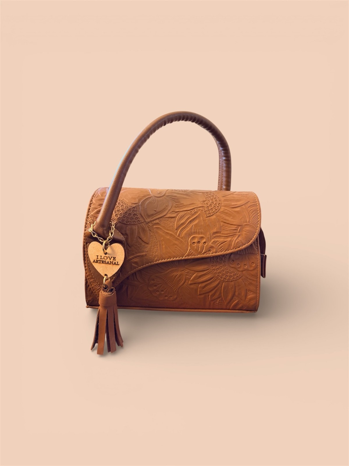 Add authentic Mexican craftsmanship to your collection with this brand-new genuine leather small handbag , beautifully handmade in León, Guanajuato, Mexico , a city internationally recognized for premium leather goods. This elegant bag features a floral embossed leather design in warm brown tones, a structured silhouette, and a comfortable top handle . Its compact size makes it perfect for carrying your essentials while adding a timeless artisan touch to any outfit. ✨ Details: Condition: New Material: 100% Genuine Leather Origin: Handmade in León, Guanajuato, Mexico Color: Brown Design: Floral embossed leather Size: Height: 5.5 Length: 8 in Width: 3 in Style: Small top-handle / mini handbag Closure: Flap closure Features: Back zipper pocket Side D-rings (strap compatible if you choose to add one) Each bag is artisan-made , so natural variations in leather and embossing make every piece one of a kind. 📦 Fast shipping from the U.S. 👜 Only one available – limited handcrafted piece.