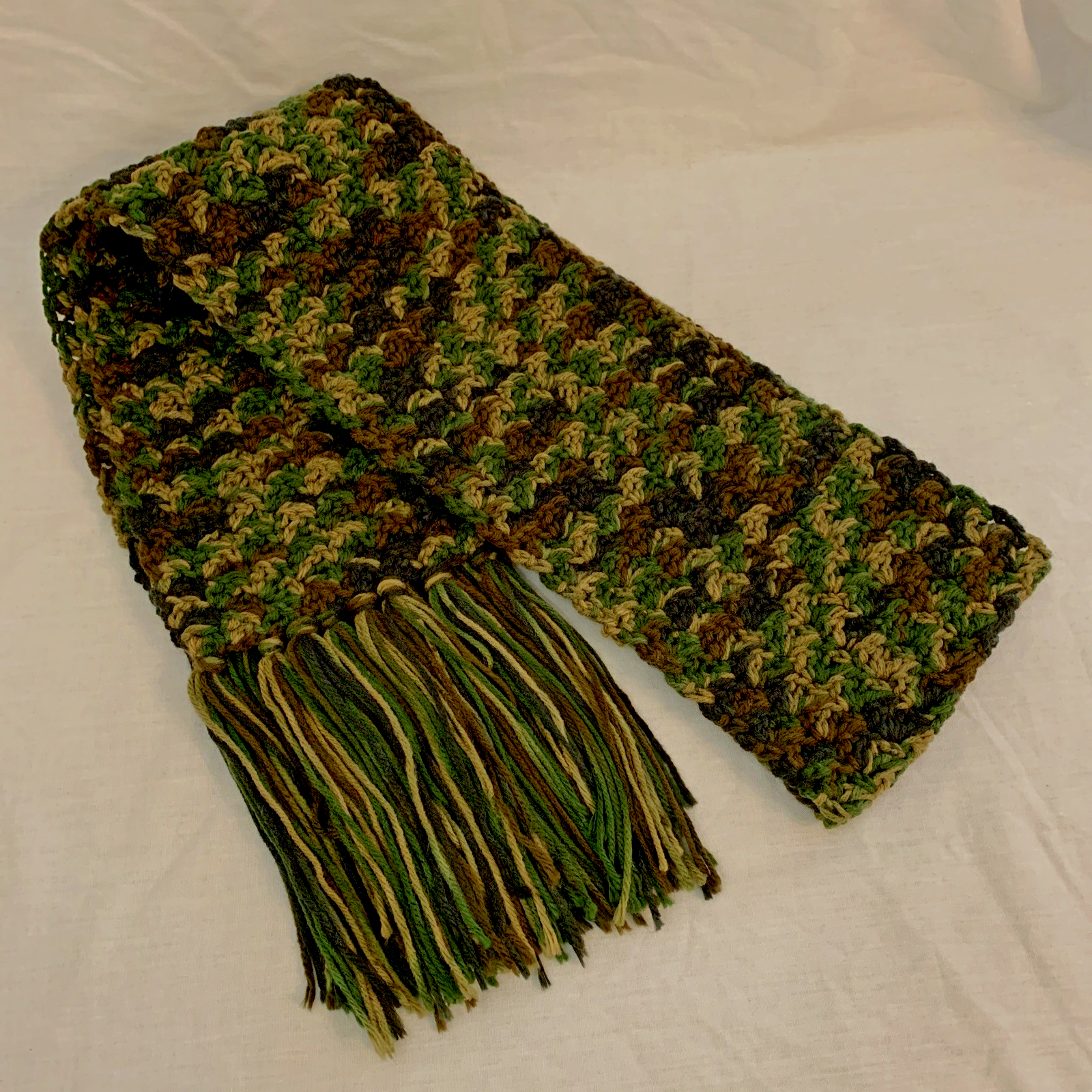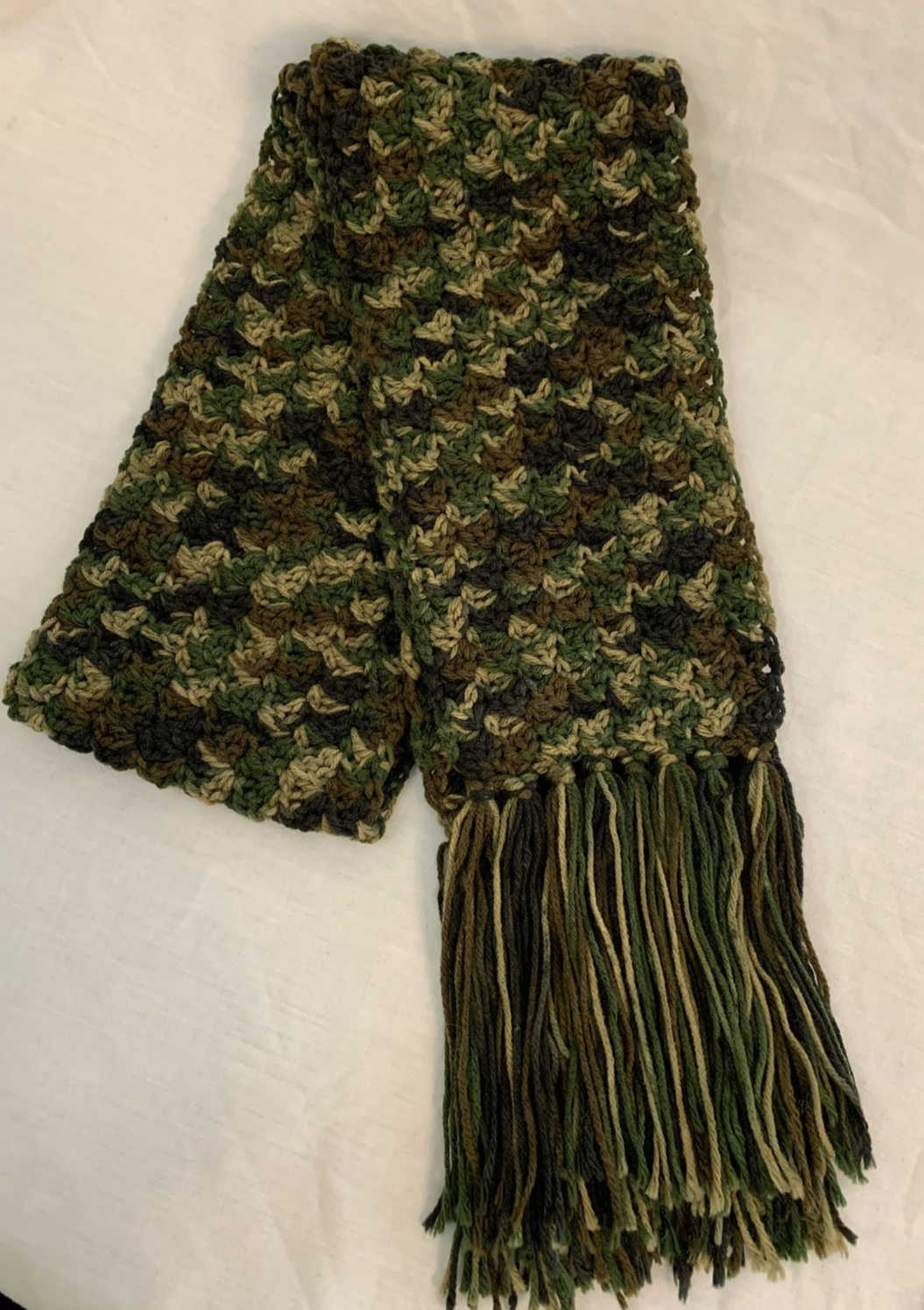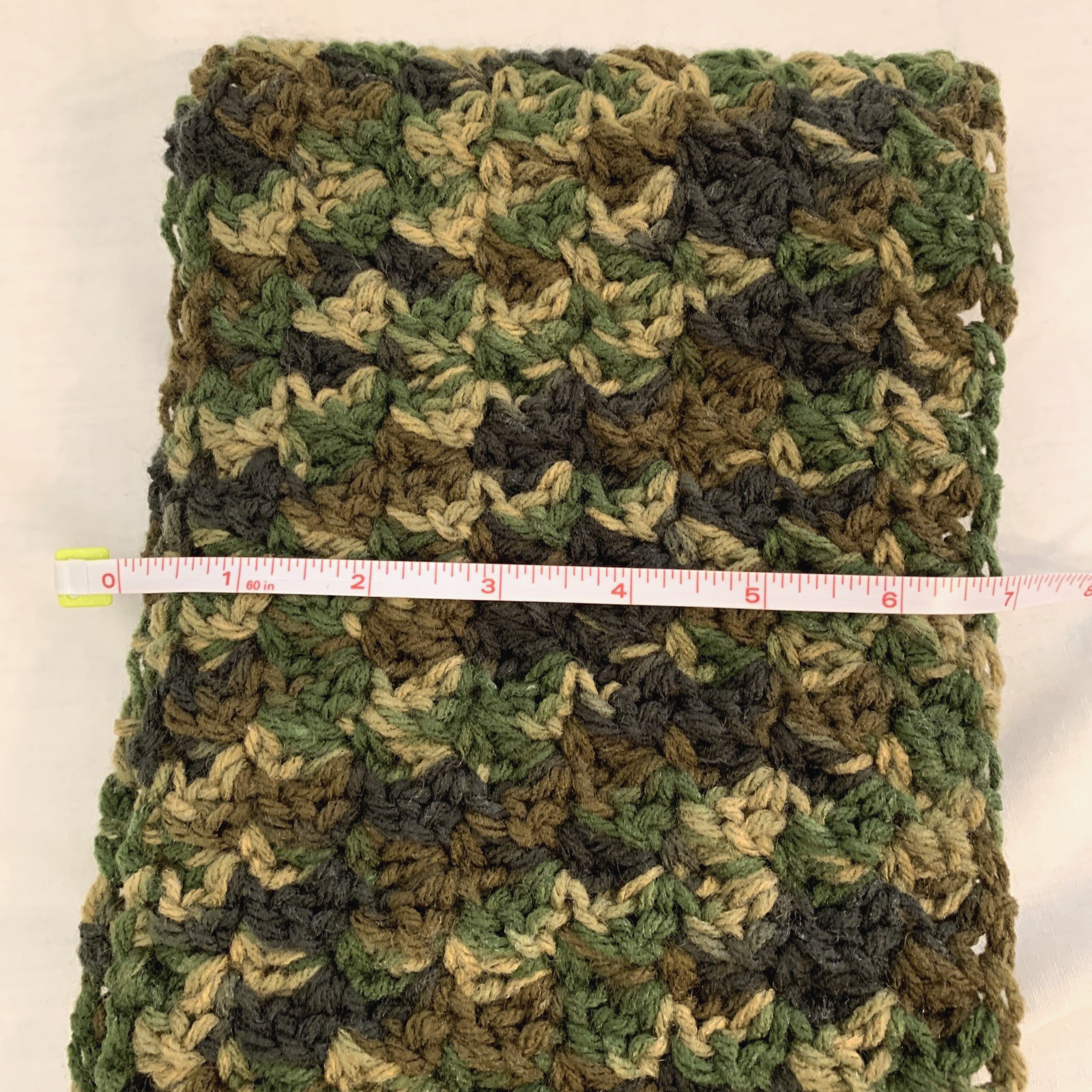 This camouflage scarf is 72" long and 7" wide. It's soft and warm, yet it's lightweight. It's brand new and perfect for hunting season, or just for those who love the beautiful rich greens and brown of the forest! It's handmade of soft acrylic yarn that is made in the USA! This scarf is machine washable if you'll use a lingerie bag, or pin it inside a pillowcase and wash in cool water. I crochet in a smoke free, pet free home. Please see "seller's other items". I'm going to be listing many vintage and antique items from a family estate , and will try to list on a regular basis. RETURNS: I stopped accepting automatic returns after over 2 decades of selling on eBay with 100% positive feedback, because of the expense of "buyer's remorse". If there is a mistake in a listing, I will always do my best to make it right, if you will contact me immediately! NOTE: I list for family and friends. All items are from smoke free homes. The pre-owned items that I list are used, vintage or just plain old. Items are researched on various sites, to get pricing ideas. I will always present reasonable offers to owners of the listings. Items are cleaned, unless the description explains why that isn't possible or wise. Items may show some scratches, wear or other age related imperfections. Items are described as accurately as possible, and I try to get great photos. Please avoid misunderstandings by reading ALL text and seeing ALL pictures. If you need more information: please ask any questions before bidding/buying. Shipping: I use eBay's calculated shipping, labels, and tracking services. The calculator estimates shipping based on the total weight and size of the package, to your zip code. Please ask for an invoice when buying multiple items, so that I can combine shipping to save your money! Please remember that I must still pay for "free shipping" to you. Sellers have NO control over the cost of shipping . Fees cost sellers OVER 20% of the TOTAL of what you pay . PLEASE keep this in mind when making an offer, and when leaving feedback about what makes up "very fair and reasonable shipping charges". I work hard to earn your 5 star rating! I re-use CLEAN shipping materials to help keep costs low, since I am NOT a professional seller. I ship via the Postal Service, asap after payment is received! Please note that eBay cancels unpaid orders on the 4th day. If you’d like to know about new listings, please "follow" and see new listings in your feed. Thanks for looking! Bid/buy with confidence - see my feedback.