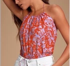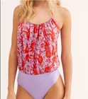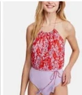 Free People Women's Purple & Red Liza Halter Bodysuit Size Small. Fun & Flirty bodsuit Drawstring neckline Snap crotch Cheeky Size L