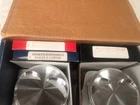 New set of 8 JE Cutom Forged pistons for small block Chevy with 18 deg heads Spherical Dish top piston 4.127 bore 4.120" gauge point 1.140" CH Pin fit for .928 wrist pin 1.5mm , 1/16, 3mm rings pistons have side gas ports New moly rings included No wrist pins or clips This would work with 3.75 stroke ,6" rod with 9.025" deck block and would be .010" down These pistons are New. They were a custom order from 15 or 20 years ago