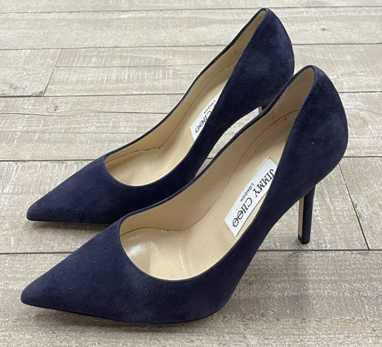 Brand: Jimmy Choo Size: 35.5 (5.5 US) Color: Navy Condition: New without a box Brand name in the interior has been blackline to avoid store returns Sole has minor scuffs Measurements are approx. Width: 3" Sole: 9.5" Heel: 3.5" PLEASE FEEL FREE TO ASK QUESTIONS BEFORE PURCHASE Thank you!
