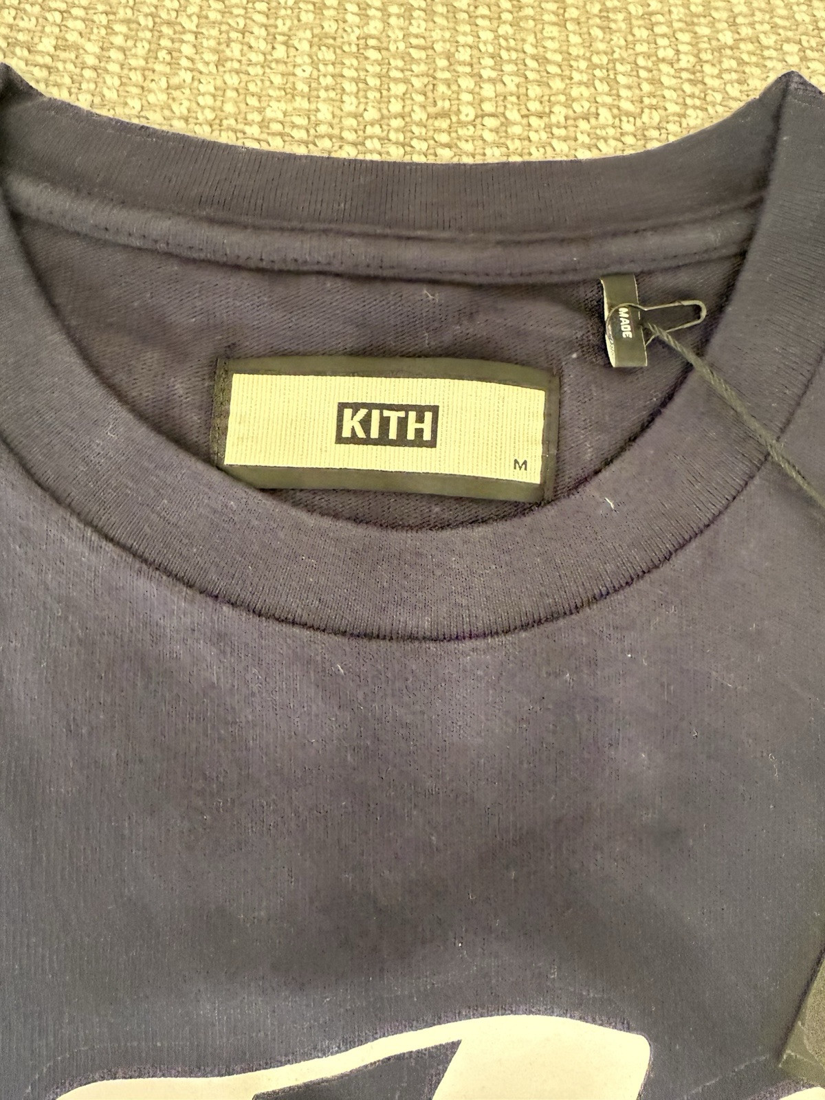 NWT Kith T Shirt Waved Flag T Navy Blue Size Medium. Condition is New with tags. Shipped with USPS Ground Advantage.