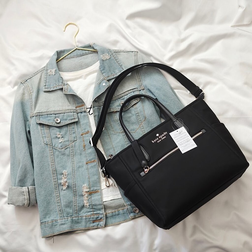 New Kate Spade Chelsea Medium Black Satchel Tote KC526 $299 Measurements 10" H x 5.2" D Width: 10.72"W (bottom) 14"W (top) Handle Drop: 5.8" Features Strap Drop: 22" Metal pinmount logo Closure Type: Drop in top zip closure Dust Bag Included: No Interior: Front Slip, Front Credit Card Slots, Key Leash, & Back Zip Pockets Exterior: Top Zip Pocket, Front Zip Pocket, & 2 Side Pockets Materials 100% Recycled Nylon Trim: Smooth PVC trim Imported Style Number KC526