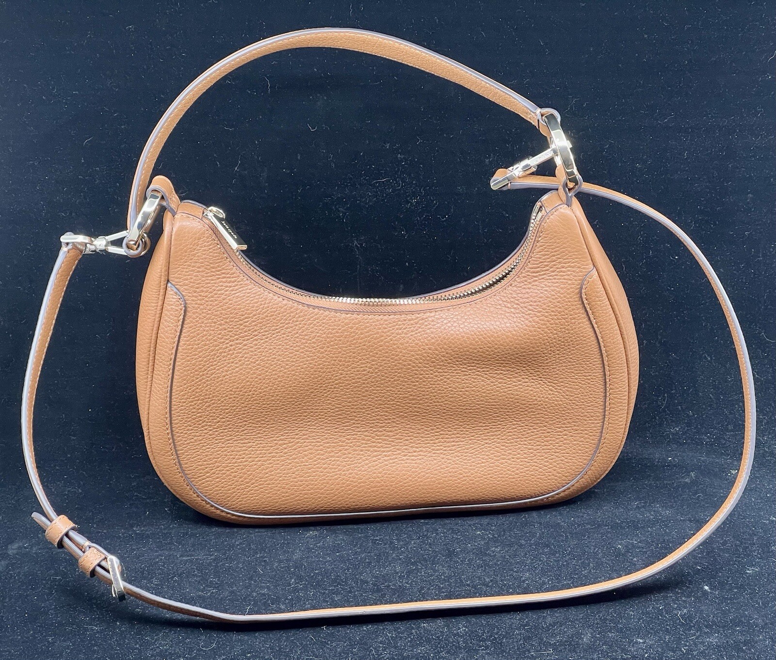 Elevate your style with this brand new Kate Spade Leila Warm Ginger Pebbled Leather Shoulder Bag KA804. The exterior color and handle/strap color are both Warm Ginger, complemented by gold hardware. The bag features a zip closure, leather finish, and adjustable detachable crossbody strap, making it both stylish and functional. The Kate Spade New York Leila shoulder bag is a perfect addition to any woman's wardrobe. It is part of the Kate Spade New York product line and is made of high-quality leather. The bag is versatile and can be used for any occasion, whether it's a casual day out or a formal event. Get your hands on this stylish accessory today!