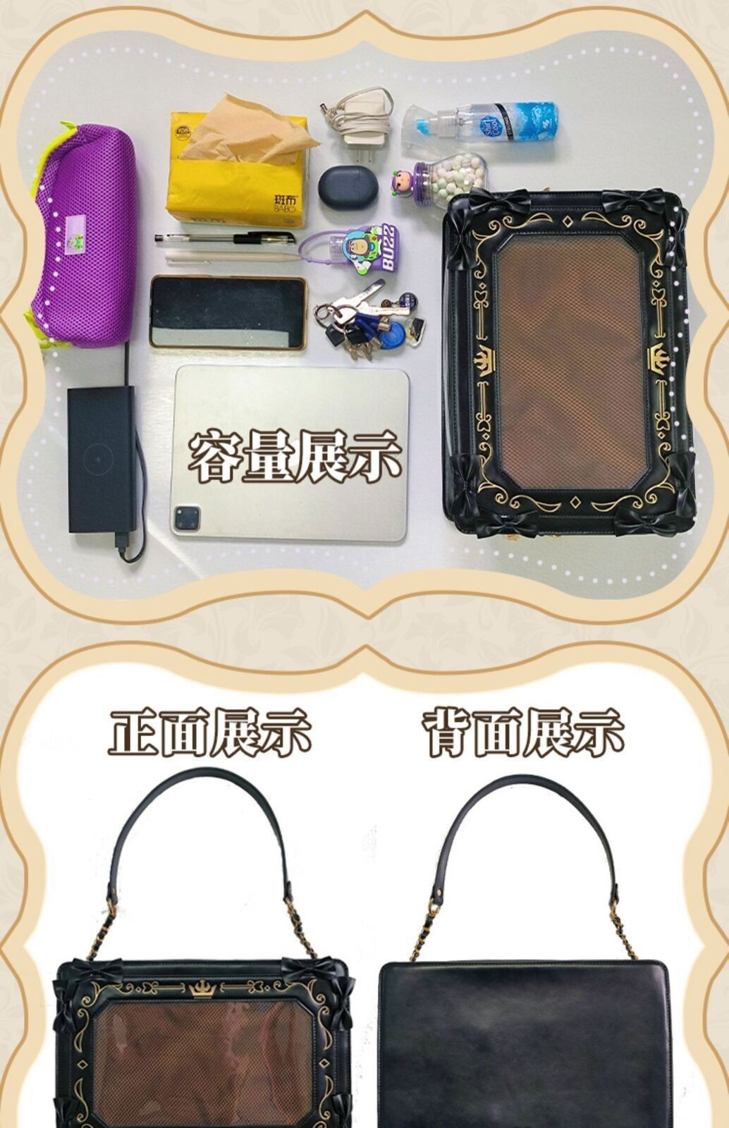 New Lolita Girl Itabag Retro Shouder Crossbody Bags Transparent Handbag Totes 100% Brand new & High quality Material:PU PVC Color: As shown in picture Size: Width 33cm, Height 23cm, Thickness 8cm Belt length: 78cm for one shoulder and 77-140cm for crossbody Package:1 bag only (not include Other Accessories.) Note: All Sizes Are in Centimeters, 1cm=0.3937ch, 1 Inch=2.540cm Please allow 1-3cm difference due to manual measurement. Due to light and screen difference, the item's color may be slightly different from the pictures. Please pay attention to safety when using, if you have any questions, please contact us