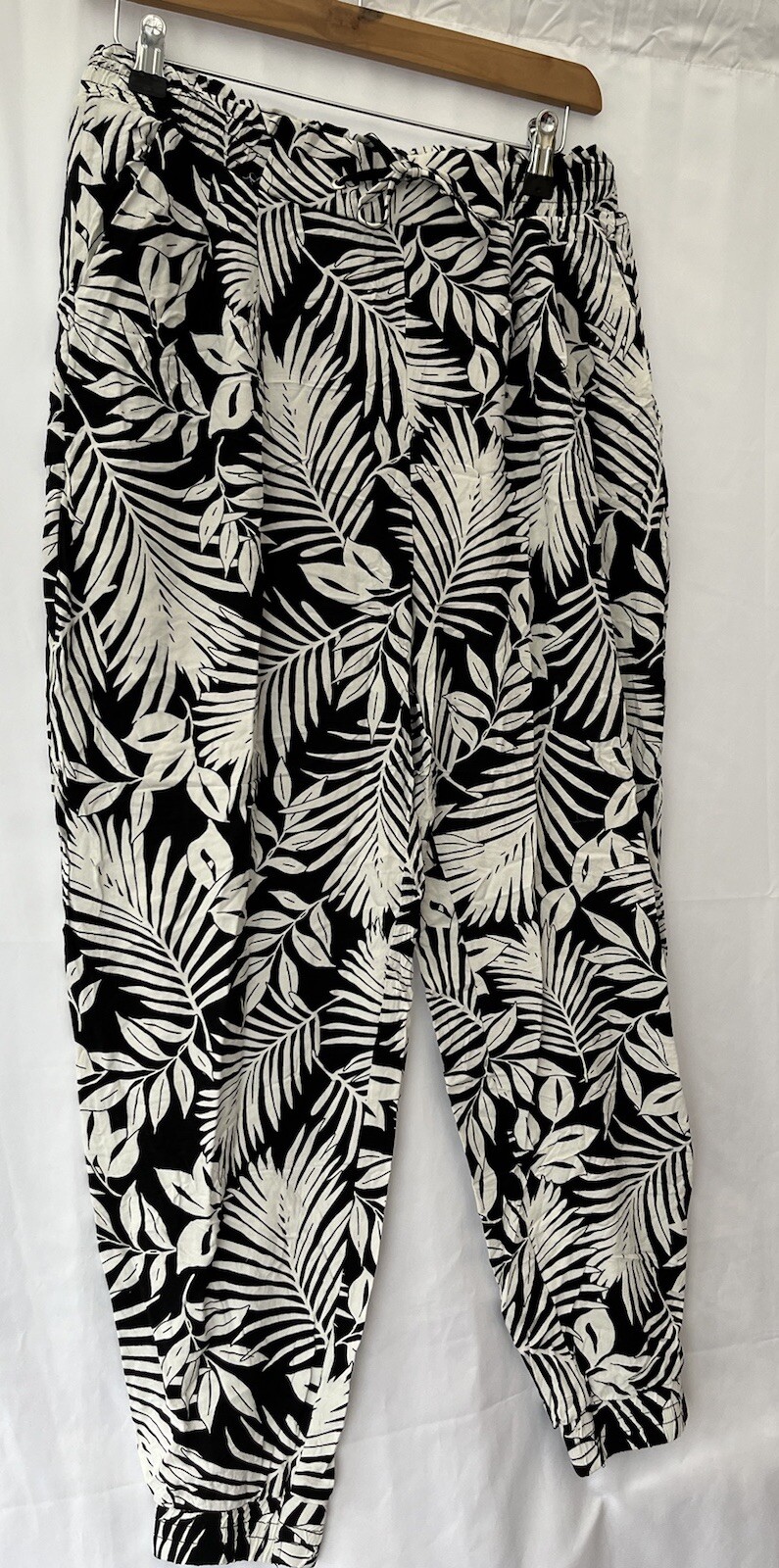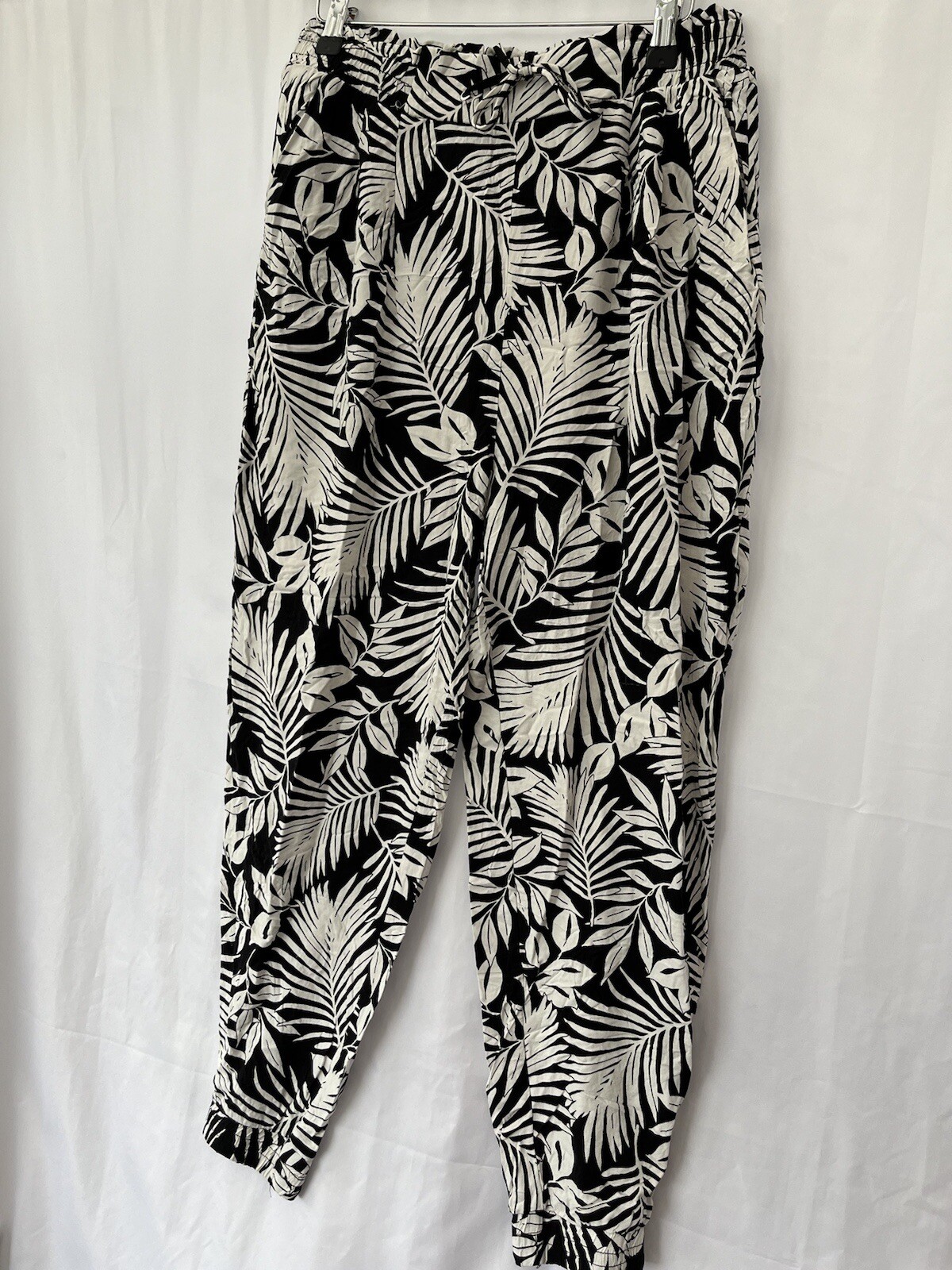 New Look Black Leaf Print Trousers Size 12 W30" L24" Viscose Elastic Waist Women Condition is good RP24180 Delivery Royal mail tracked 48 We strive to give good quality and service, please get in touch with any problems. Please look at our eBay shop where new items are added daily, and subscribe to our shop for more offers and newsletters Many thanks for your interest - we are raising money for a school in Uganda - to give children the chance of a life changing education - thank you for your time.