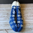 Step up your game day attire with these Los Angeles Dodgers Foco Footy Christmas Slipper Socks. Designed for women with a shoe size of 6-10, these socks are as functional as they are festive, featuring a non-skid sole to keep you comfortable and in place. The blue and white color scheme echoes the team's iconic palette, making them a perfect choice for any Dodgers supporter. Officially licensed by Major League Baseball, these socks are crafted with care by Foco, a brand known for quality and fan dedication. They're not just socks; they're a statement of loyalty to the Los Angeles Dodgers, suitable for wearing to the game or as a part of your holiday wardrobe. Keep your feet warm and your team spirit high with these unique fan accessories.
