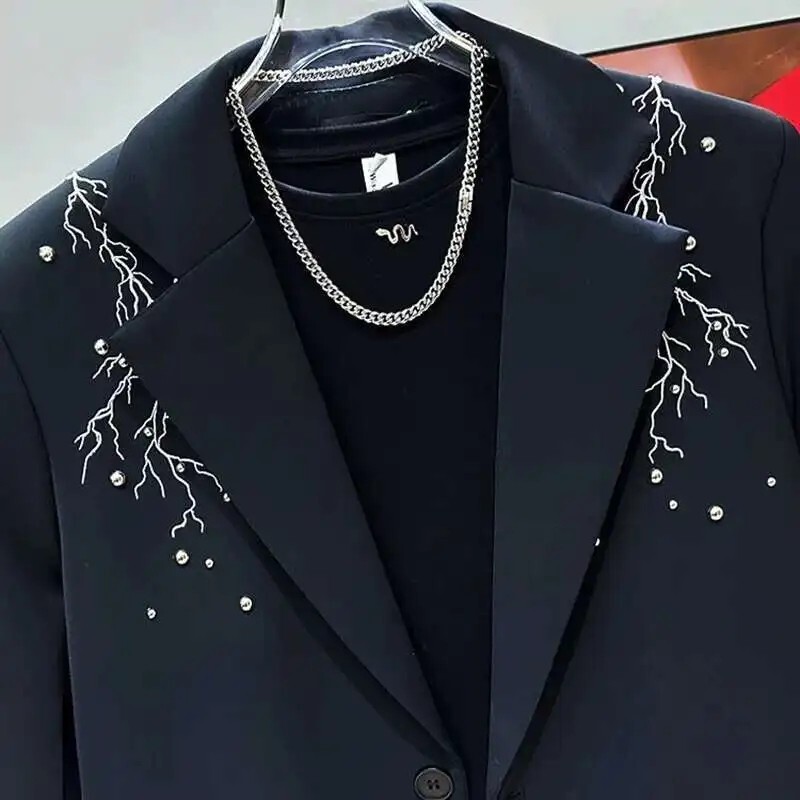 Men Luxury Fashion Blazer Jacket Sequin Chain Casual Stylish Party Long Sleeve
