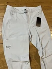 The product is a pair of men's Arc'teryx Gamma Lightweight pants in size 30, featuring a regular fit and a 30-inch inseam and waist size. The pants are in a stylish light gray color suited for hiking, made from a lightweight canvas fabric for comfort and durability. This new with tags (NWT) item is perfect for outdoor adventures and activities where a lightweight and breathable pant is essential.