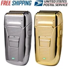 Des c ri p tion: Comfortably Fits Facial Contours: Alternate shaving design, elastic facial adjustment system, conforms comfortably to facial contours, no residue after shaving. Double Blade Design: Slim Screen Knife Net, Floating Face Adjustment to Quickly Capture Beard. Double blade design, fast cutting beards, incisive and not glued. Dual-purpose charging plug: Dual-use charging and plug, USB charging design, equipped with USB charging cable, can be connected to a variety of USB power ports, convenient charging. Multifunctional: Multifunctional, can be used to shave the bald head and shave the beard. Conforms to the ergonomic design, easy to grip and use. Easy to carry: Light and small in size, equipped with a storage bag, easy to carry when going out. Condition: 100% Brand New Item Type: Razor Material: ABS Color: Gold/Gray Power: 3w Charging Time: 5 Hours Use Time: 50 Minutes Battery: Lithium Battery 600mAh Battery Model: 14500 Razor Size: Approx. 12.5 x 6.5 x 3cm / 4.9 x 2.6 x 1.2in Weight : 270g(with box) Package List: 1 x Razor 1 x Storage Bag 1 x Transparent Cover 1 x Head Cover 2 x Half-Round Knife 1 x Cleaning Brush 1 x Manual 1 x USB Charging Cable