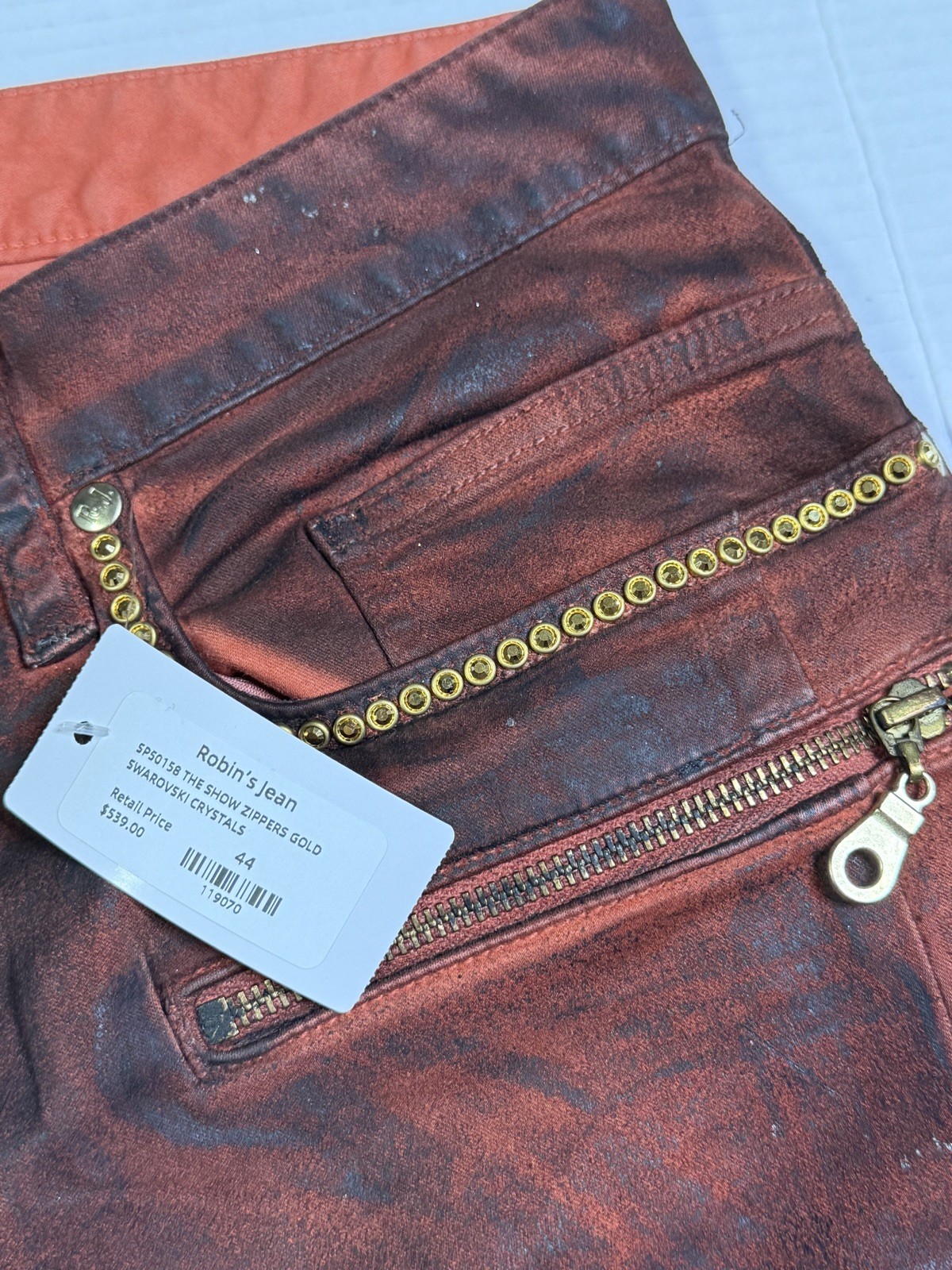 This is brand new Men’s Robin’s Jean Size 44 Inseam 35 Retail price $539.00 Style #SP50158 THE SHOW GLD Swarovski Crystals RED THIS IS 100% authentic This is brand new Comes with tags! But no gold wing key chain