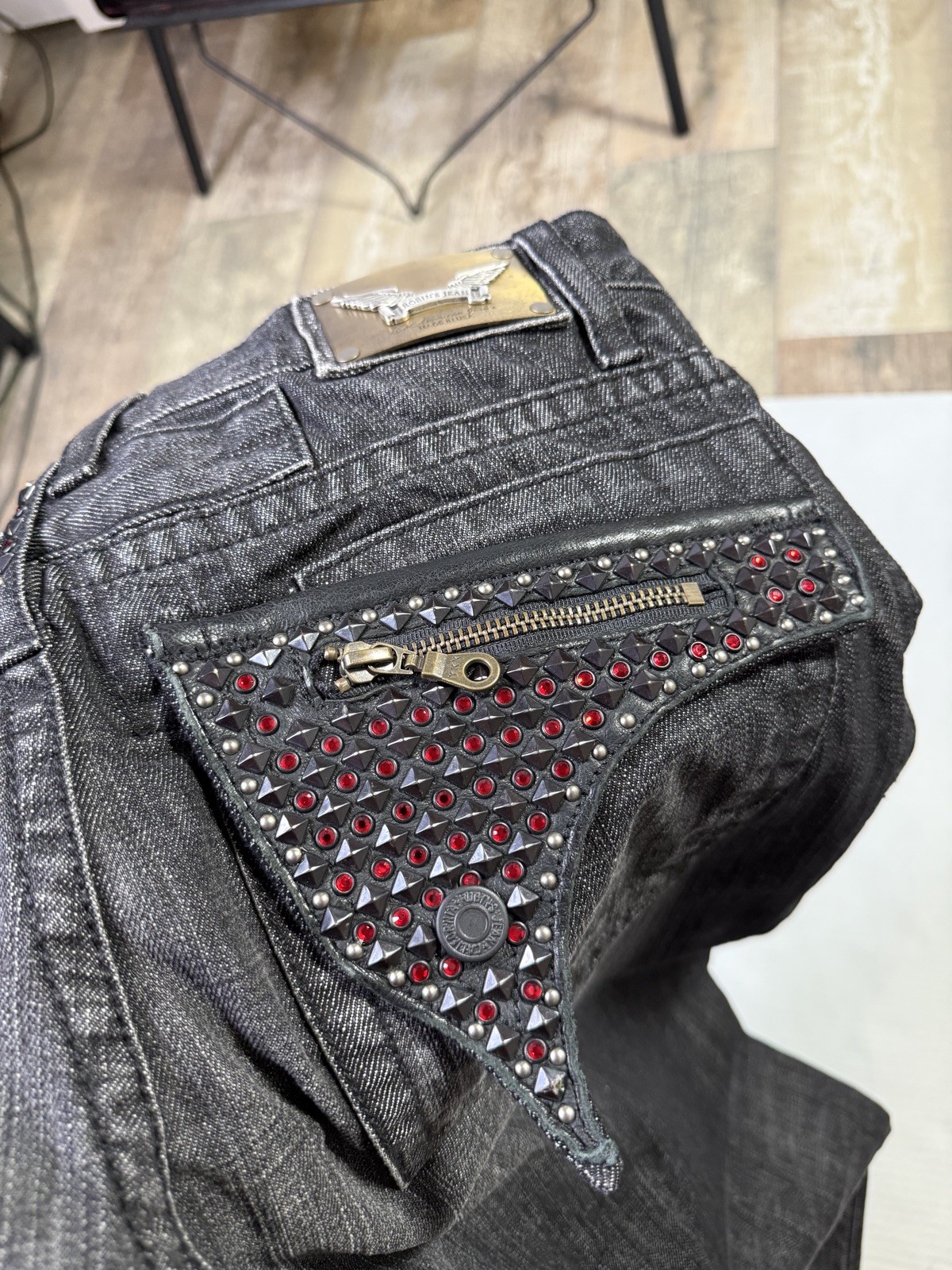 $ 132.0New Men’s Robin’s Jean SZ 44 Style #SP5471 MARLON Black Swarovski Crystals