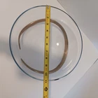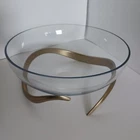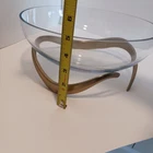 This "Eco" Centerpiece Bowl from New Mexico design house Nambé will be a fabulous addition to your modern home or office. This stunning contemporary clear art glass piece measures 11 inches in diameter and 5 inches in height, sitting on its free-form, unique abstract base, which is a matte gold color. The base is made from Nambé's proprietary alloy, the removable bowl is made of art glass, and the two pieces come in the original box for safekeeping. If Miss Suzy were less accident-prone, she would hang onto this very cool piece herself! The bowl is designed as a centerpiece but could be used in many other ways, right off the top of my head I would say fruit bowl in the kitchen, decorative bowl for office, guestroom, or bathroom, an eye-catching statement piece for your entryway or foyer... Please see all the photos for the printed material that comes with this bowl and base, which fills you in on the company, and the proper care of your Nambé purchase. It has been gently used. The base looks absolutely brand-new. The bowl has very minor scuffs that don't really even show up in the photos, and certainly don't jump out at me; I had to look hard to notice them, and I am picky. There are naturally occurring, very tiny air bubbles, which is why I say art glass. Slight irregularities are part of the artisan appeal. From a foot away, none of these things are noticeable. I am not new to ebay, but a split-up left all my 100% positive feedback behind on kansasboymountaingirl. Bid with confidence that your purchase will be shipped quickly, packed with care in my clean, non-smoking home, and you will pay postage only; no handling or other fees. I ship same or next day unless there is a Sunday, postal holiday, or severe weather involved. I will be listing a wide variety of interesting items, so follow misssuzy and check back to get great prices and outstanding customer service!