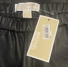 The product is a pair of Michael Kors women's black skinny faux leather leggings pants in size 6. These leggings are versatile for casual occasions and can be worn in all seasons. With a flat front and a 30-inch inseam, they offer a sleek and stylish look perfect for various outfits. The faux leather material is machine washable and easy to care for, making these leggings a practical and fashionable addition to any wardrobe.