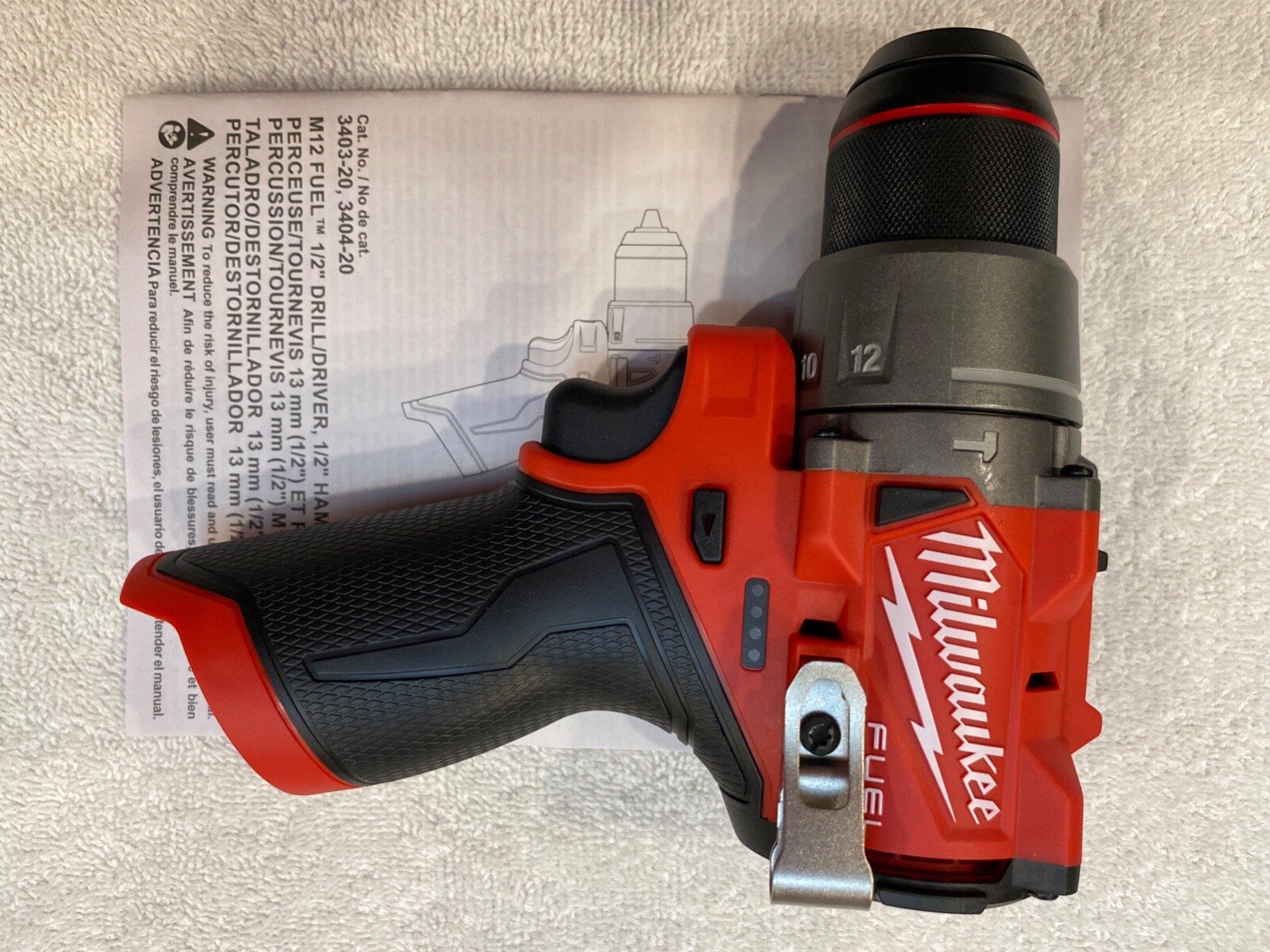 You are bidding on a brand new Milwaukee Fuel 12 volt M12 lithium Ion 3404-20 1/2” 2 speed Gen 3 hammer drill driver with built in LED. You will receive the item exactly as pictured. Item does not have a box. The battery and charger are sold separately . Please see my other Milwaukee items all new and priced to sell!!!!! Please ensure shipping address is correct when purchasing. Specifications Battery: 12 Volt (Not Included) Torque: 400 in-lbs. Blows: 0-22,500 Chuck: 1/2” Speed: 0-1,550 RPM Includes the Following 3404-20 M12 12V 1/2” Hammer Drill Driver