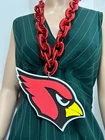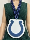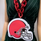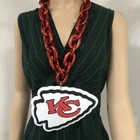 This chain is 18.5 inches long, with links that are about 2 inches high by 1.5 inches wide. The team emblem is made of high-density EVA foam and is about 8 inches wide by 5 inches high . Show your team spirit with this new NFL Pick Your Team Fan Chain Necklace. The necklace features a foam insert that allows you to add your favorite team's color and logo to the necklace. This unisex adult necklace is one size fit all and made in the United States. Perfect for any football fan, this necklace is a great addition to your fan apparel and souvenirs collection. Get yours today and show your support or your favorite NFL team!