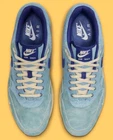 This is a pair of Nike Air Max 1 Premium Denim sneakers in size 11.5 for men. The shoes feature a low top shoe shaft style, blue denim upper material, and a retro design. They are part of the Nike Air Max product line and are a limited edition release from 2022. The sneakers are branded with Kith, Supreme, Cpfm, Travis, Exclusive, and Scott, and are nicknamed "Dirty Denim."