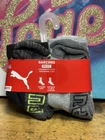 Elevate your child's sock game with these PUMA crew socks. This pack includes six pairs of socks in white, grey, and black colors, perfect for both boys and girls. Made of high-quality polyester material, these socks are soft, comfortable, and durable. The crew style offers ample coverage, making it perfect for everyday wear. These socks are available in size small, suitable for shoes between sizes 4 and 8.5. With the iconic PUMA brand, these socks are a great addition to any kid's wardrobe.
