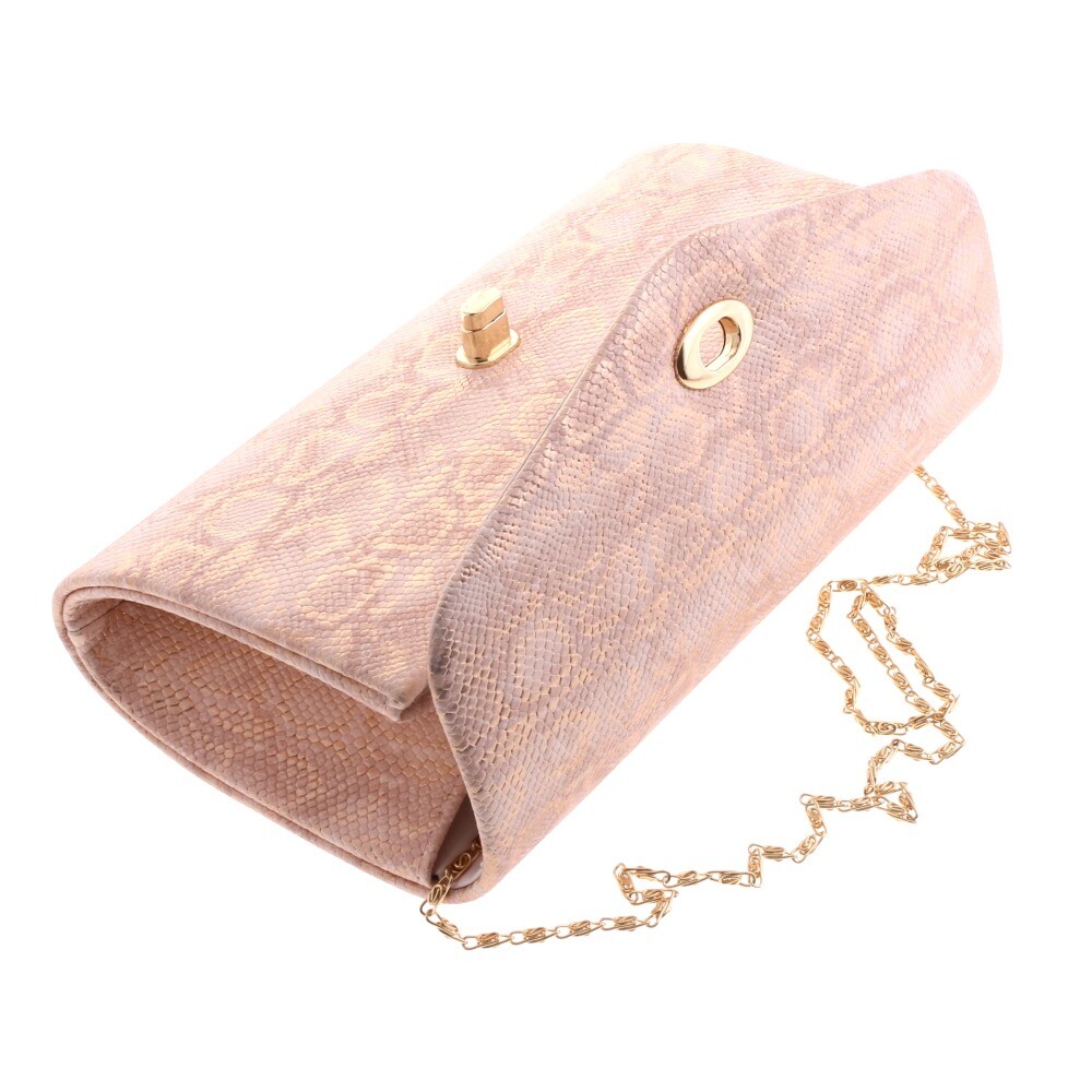 New Pink Leatherette Snake Pattern Clutch Evening Bag / Long Chain Strap / Approx Size: 9"L x 4.5"H x 2"W / Color:Pink ** color of the picture may vary due to lighting ** Condition: Brand New SKU: WYQ140-PNK Color: Champagne Design: All orders will ship from USA via UPS or USPS. We expect all local orders will receive the items within 7 business days or less depend the location. Worry free international shipment delay or custom duty fee.