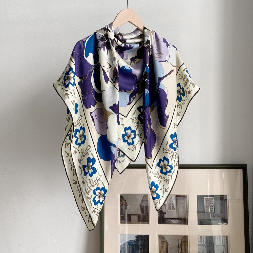 New Quality 100% Silk Hand Rolled Edges Printed Double ”Sided Shawl Scarf 43“