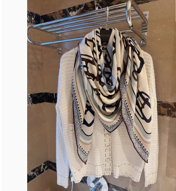 $ 42.56New Quality 22 Momme Silk Square Two Face Print Hand Rolled Edges Scarf 65cm