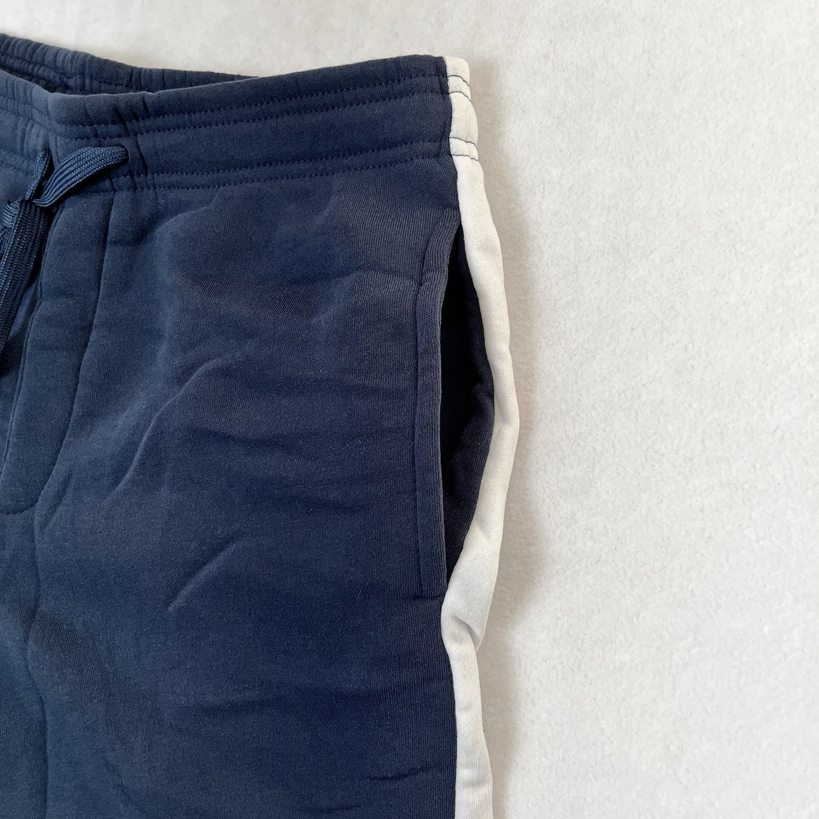 1040 Real Essentials Men's Activewear Shorts, Athleisure, Workout, Sweat shorts Black with white vertical side panels Side pockets; Drawstring Closure with elastic/stretch waist New without tags