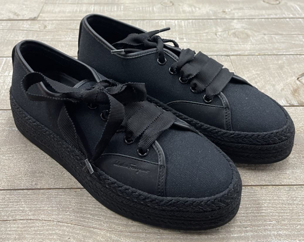 Brand: Salvatore Ferragamo Size:7.5 Color: Black Condition: New in box (box is a little beat up from storage) PLEASE REVIEW ALL PICTURES Measurements are approx. Width: 3.8" Length (sole): 10.3" PLEASE FEEL FREE TO ASK QUESTIONS BEFORE PURCHASE Thank you!
