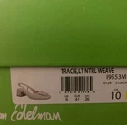 New in box, never worn. Sam Edelman brand Tracie slingback heel. Neutral colored weave pattern, square toe, buckle detail, and block style heel
