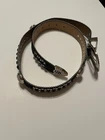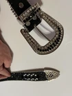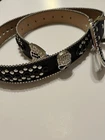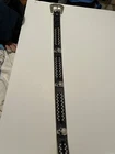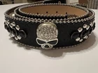 Add a touch of Western style to your outfit with this stunning Skull Pirate belt. The black leather belt is accented with studs, buckles, and rhinestones, making it the perfect accessory for any cowgirl or pirate outfit. The belt is 1.5" wide and has an adjustable buckle, ensuring a comfortable fit for all sizes. This belt is perfect for those who love the Western theme and want to add a unique touch to their outfit. The Skull Pirate brand is known for its high-quality products, and this belt is no exception. Made with silver hardware and accented with a skull and cowgirl theme, this belt is sure to make a statement. Whether you're dressing up for a costume party or just want to add some flair to your everyday outfit, this belt is the perfect choice.
