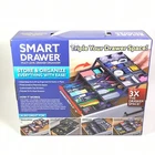 Effortlessly get more organization and storage with the Drawer Organizers – an intelligent solution for optimizing drawer storage. Whether it's your desk, kitchen, vanity, or office cabinets, regain control over your surroundings and create more room to breathe. Designed with ingenuity, this 3-tier expandable drawer organizer multiplies your available storage threefold, thanks to its adaptable dividers. Crafted from durable ABS plastic, it can effortlessly handle various loads, ensuring long-lasting utility. Tailored to fit most standard drawers, its configurable bottom tray allows it to seamlessly align with your specific needs. Use it to elegantly manage your silverware, jewelry, cosmetics, makeup, stationery, office supplies, and art materials. By customizing the bottom tray's width and arranging the provided set of 12 dividers to your preference, you can effortlessly accommodate items of all sizes. Embrace the transformation as the Drawer Organizers declutter and maximize your storage potential. With this smart drawer storage organizer, enjoy the ease of finding what you need, when you need it. Streamline your environment, simplify your routines, and elevate your organization game – all while reveling in the newfound spaciousness within your drawers. Smart Desk Drawer Organizer, 3-Tier Drawer Storage Organizer For Desk Drawer, Kitchen Silverware