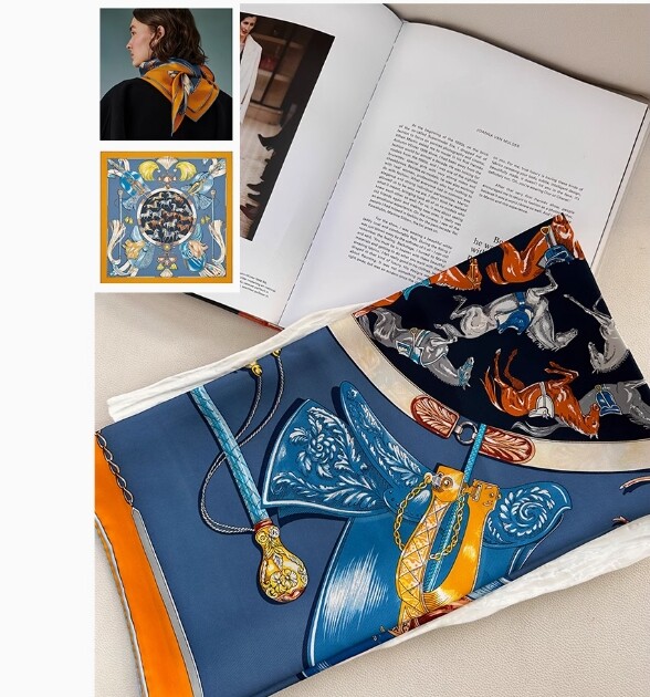 Love this scarf. So elegant and colorful on high quality twill with my favorite feel. Packaged well, good price, arrived quickly for overseas. Excellent seller.