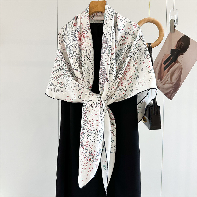 $ 27.77New Spring 2025 Boutique Twill Silk Shawl Scarf with Hand-Rolled Edge Printing 53