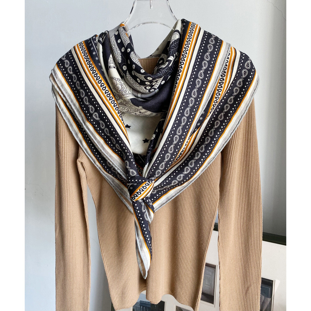$ 35.29New Spring 2025 Boutique 100% Mulberry Twill Silk Curled Printed Square Scarf 35