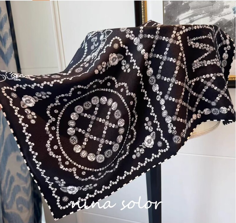 $ 30.24New Spring 2025 Boutique 30% Silk & 70% Wool Two-Face Printing Large Scarf 53*