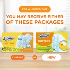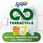 Swiffer Dusters TRAP + LOCK dust & allergens. Made with specially coated Polyester/Polyethylene/Polypropylene multi color fibers that grab onto dust & don't let go. They are uniquely designed to Trap + Lock dust from even the tight spaces in your home. common inanimate allergens from cat and dog dander & dust mite matter. 10 Refills, Gain Scented. Swiffer Dusters TRAP + LOCK dust & allergens common inanimate allergens from cat and dog dander & dust mite matter Specially coated fibers grab onto dust & don't let go 10 Refills, Gain Scented Uniquely designed to Trap + Lock dust from even the tight spaces in your home. Use with Swiffer Dusters short handle or Swiffer Dusters extendable handle Great for dusting , dusting furniture, knick-knacks in your home or office, blinds, ceiling fans, and even your car interior 10 Blue Polyester/Polyethylene/Polypropylene Dusters 0.288 lbs