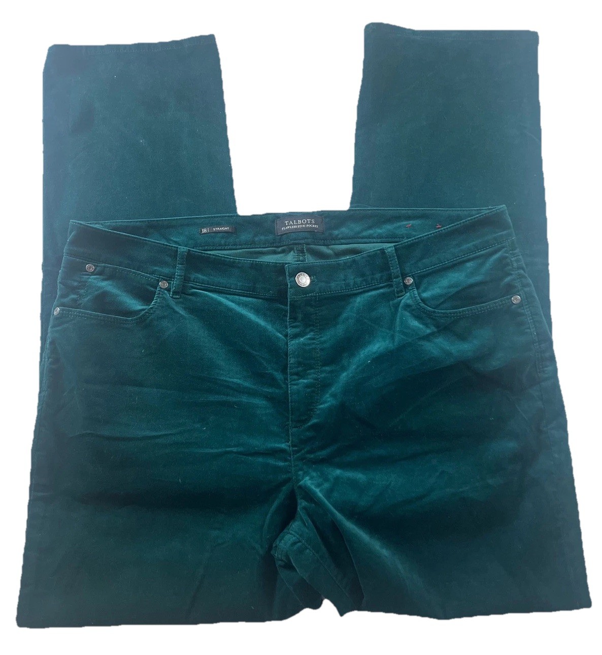 Stylish addition to any wardrobe, these Talbots corduroy pants offer both comfort and sophistication. These pants feature a classic five-pocket design that combines functionality with timeless style. The straight leg cut ensures a flattering silhouette. Designed for versatility, they pair effortlessly with sweaters and blouses for a polished casual look. Perfect for weekend outings, casual office settings, or relaxed evenings with friends. Measurements: • Waist: 19.5 inches • Inseam: 32 inches Style: Dress Pants Color: Green Department: Women Type: Pants Material: Velvet Leg Style: Straight Features: Pockets, Comfortable Fit, Classic Style, Easy Care Fabric Type: Corduroy Closure: Button, Zip Pattern: Solid Accents: Button, Logo Occasion: Casual, Workwear Inseam: 32 in Waist Size: 38 in Keywords: Talbots, Corduroy pants, Womens pants, Size 18, Straight leg, Flawless five-pocket, Green pants, Casual pants, Comfortable pants, Everyday wear, New with tags, NWT