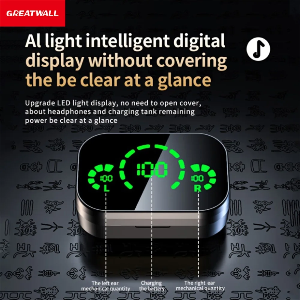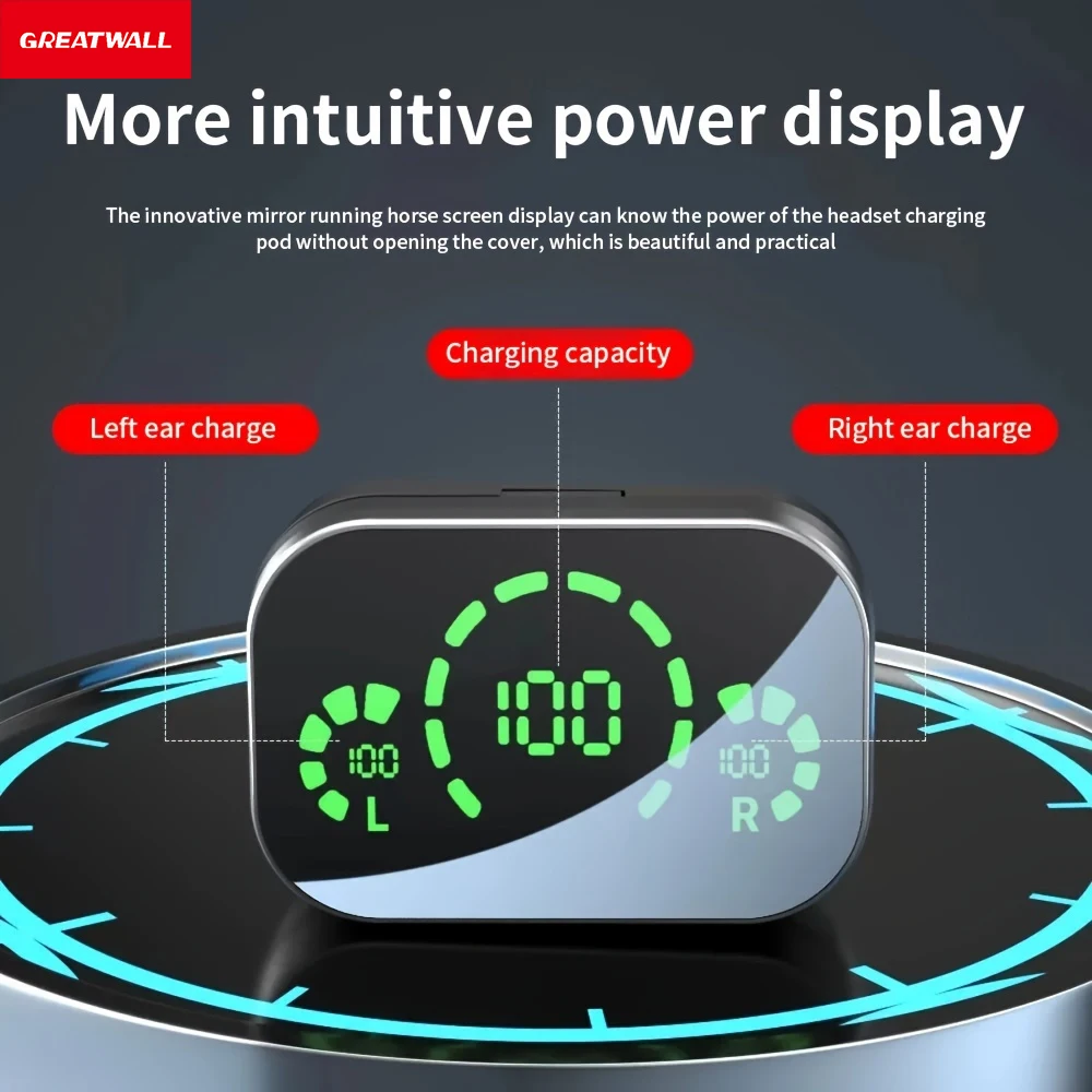 New Three-Screen Intelligent Digital Display Power Wireless Bluetooth Earphones